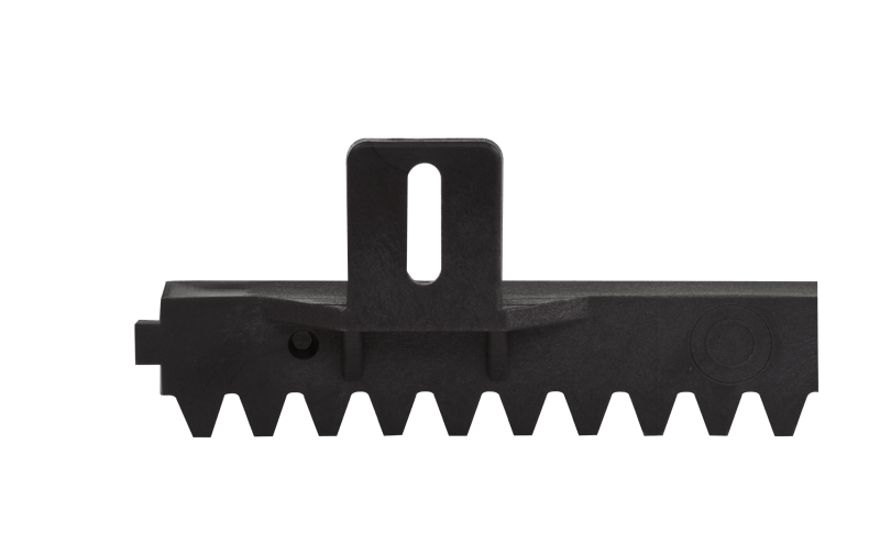 Crémaillère en matière plastique noir - longueur 1m - module 4 avec 6 vis de fixations vers le haut - Poids total du portail coulissant max. 800kg