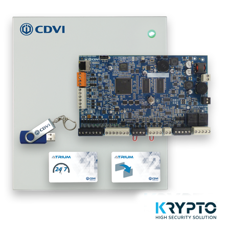 Contrôleur Atrium Krypto avec boîtier et alimentation - prend en charge deux portes et quatre lecteurs - haute sécurité grâce au protocole Mifare/Desfire EV2. Geschikt voor tot 10.000 gebruikers. Utilisez le contrôleur avec l'application et le logiciel gratuits.