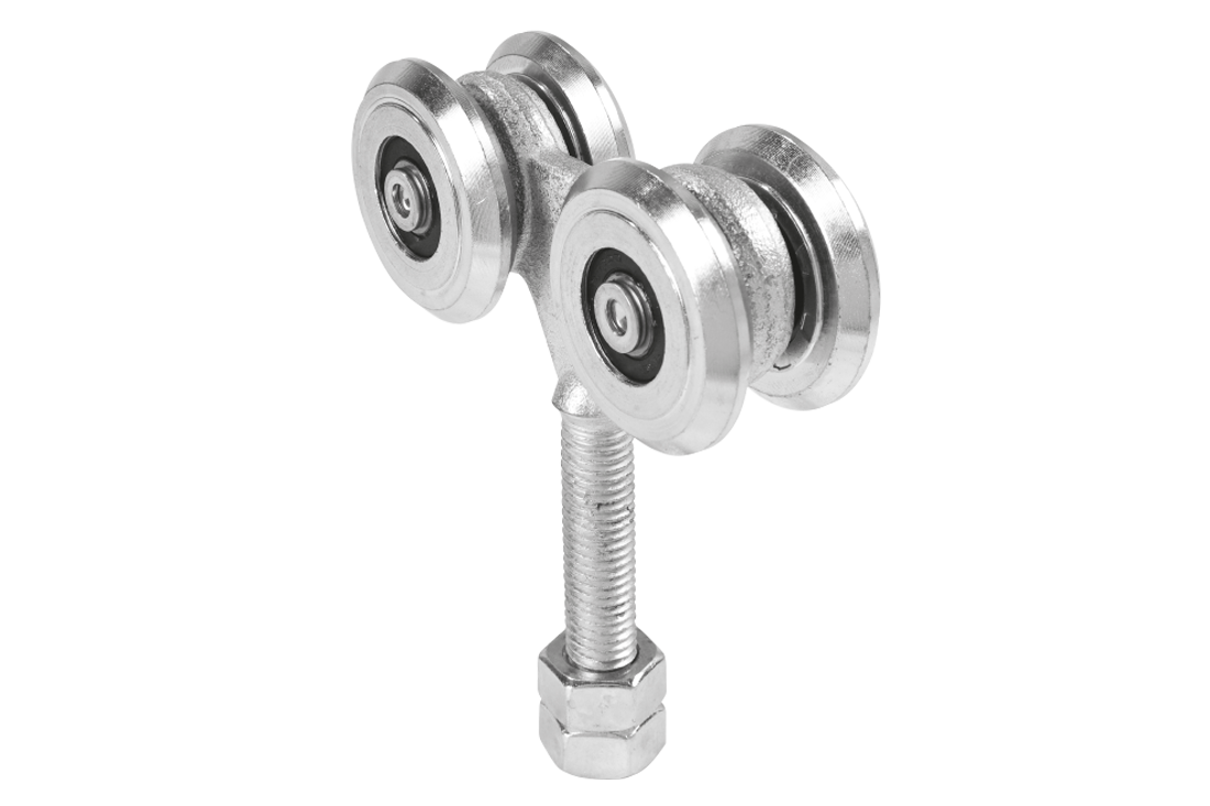 Ces chariots à roulettes permettent de faire coulisser ou rouler des portes ou des portails lourds de manière fluide et stable sur un rail.