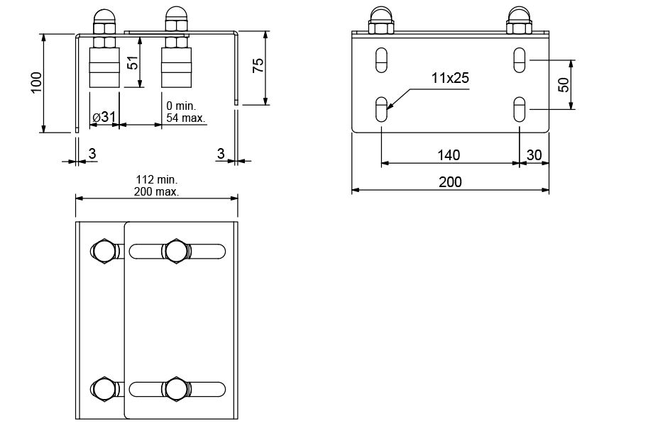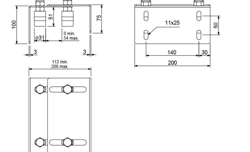 Plaque de guidage réglable et ajustable à quatre rouleaux, largeur totale de la plaque : min. 112 - max. 200 mm - écart entre les rouleaux : min. 0 mm - max. 55 mm - 4 rouleaux inclus