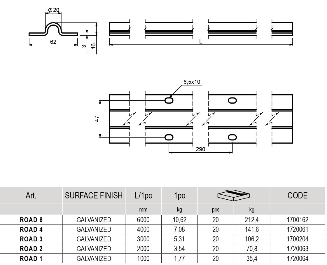 Profilé en « O » galvanisé, à visser - longueur 6 m