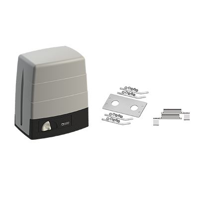 Onomkeerbare elektromechanische motor 230Vac, ideaal voor schuifpoorten tot 400kg met ingebouwde besturingseenheid serie H70 en optische encoder. Compleet met bevestigingsvoet met trekstangen en magnetische eindschakelaar.