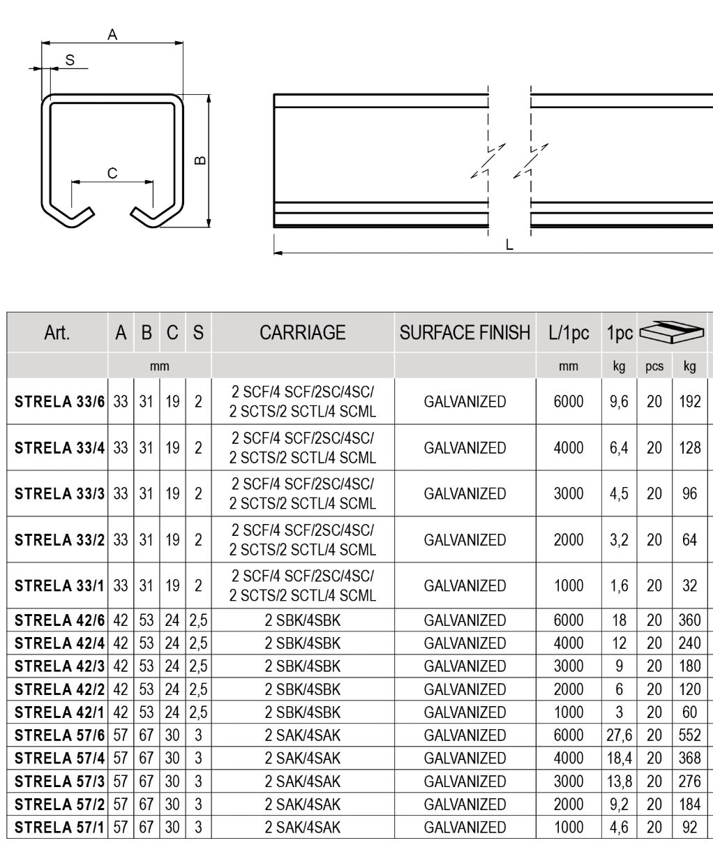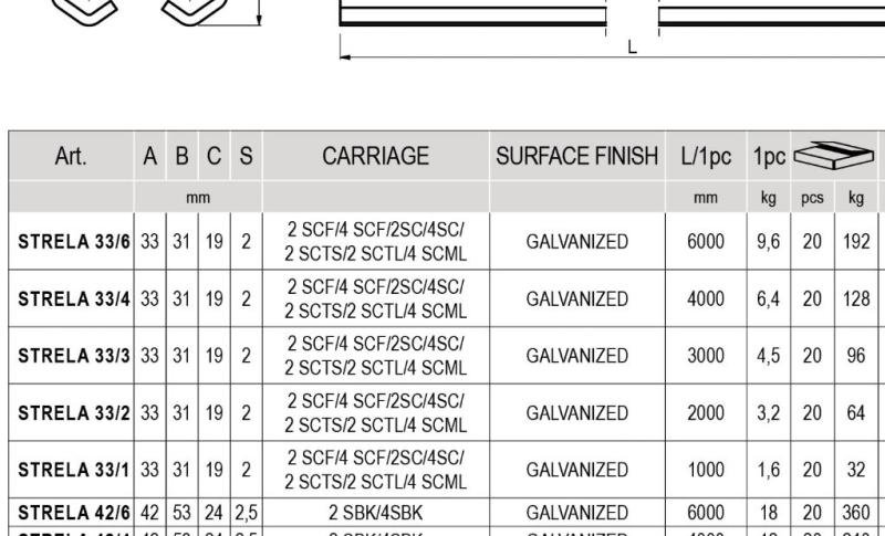 "C" profiel geleider voor schuifdeuren en luiken - lengte 6m