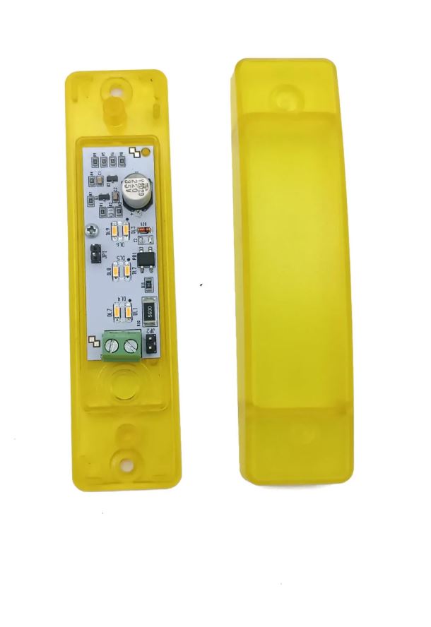 Universele LED-knipperlicht, compact formaat: 114 mm x 24 mm x 15 mm.